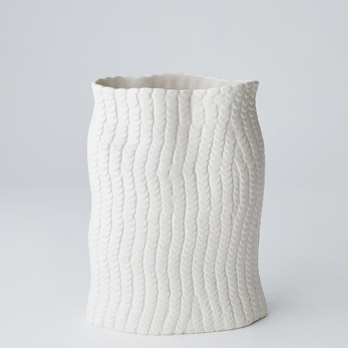 7-3/4" Round x 6"H Stoneware Fluted Planter, Matte White